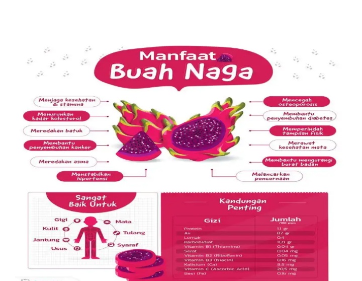 Keterbutuhan akan nutrisi tubuh dapat terpenuhi salah satunya dengan banyak mengonsumsi buah-buahan. Sangat disarankan agar mengonsumsi buah ini secara rutin, mengingat manfaat serta khasiat buah naga merah yang begitu besar bagi kesehatan kita.